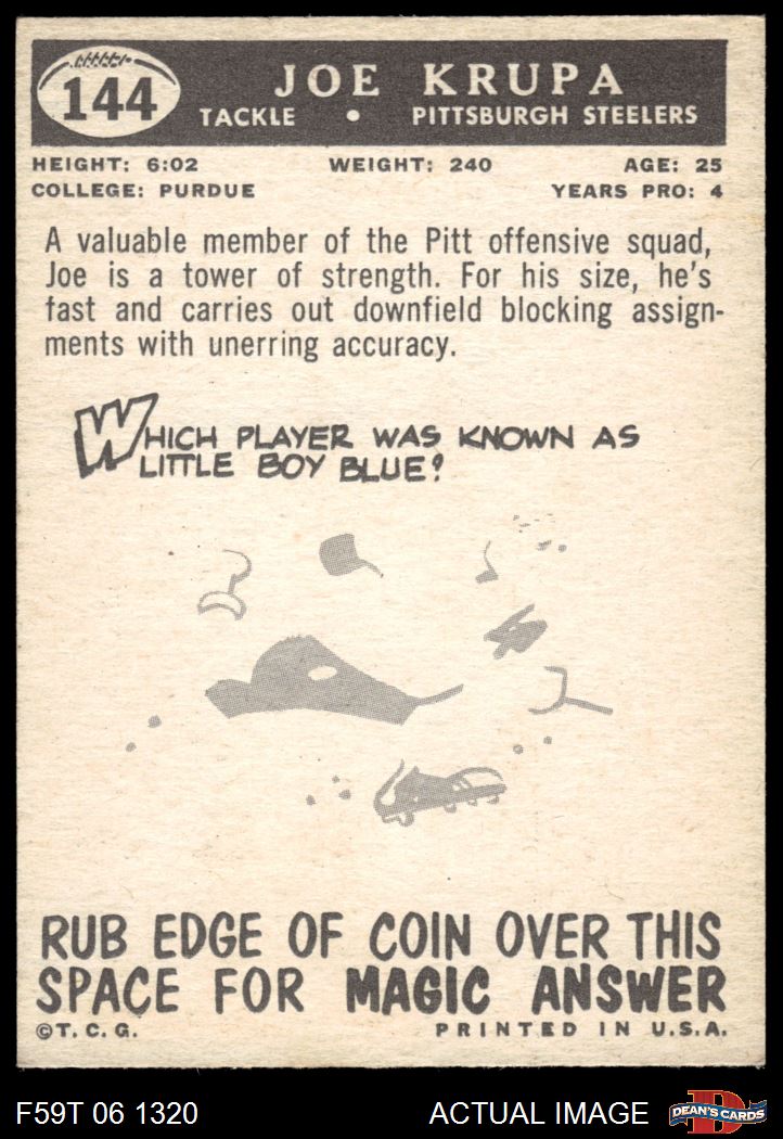 1959 Topps Football Cards (1,511 available)1959 Topps Steelers (157 available)