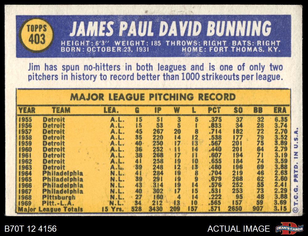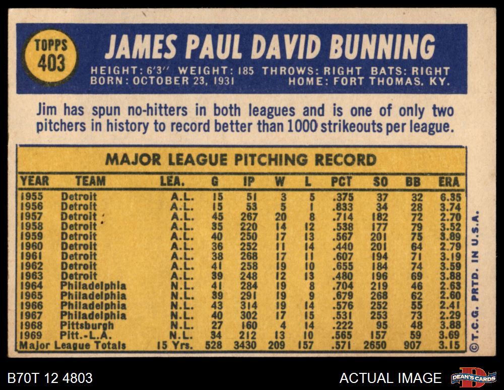 1970 Topps #403 Jim Bunning