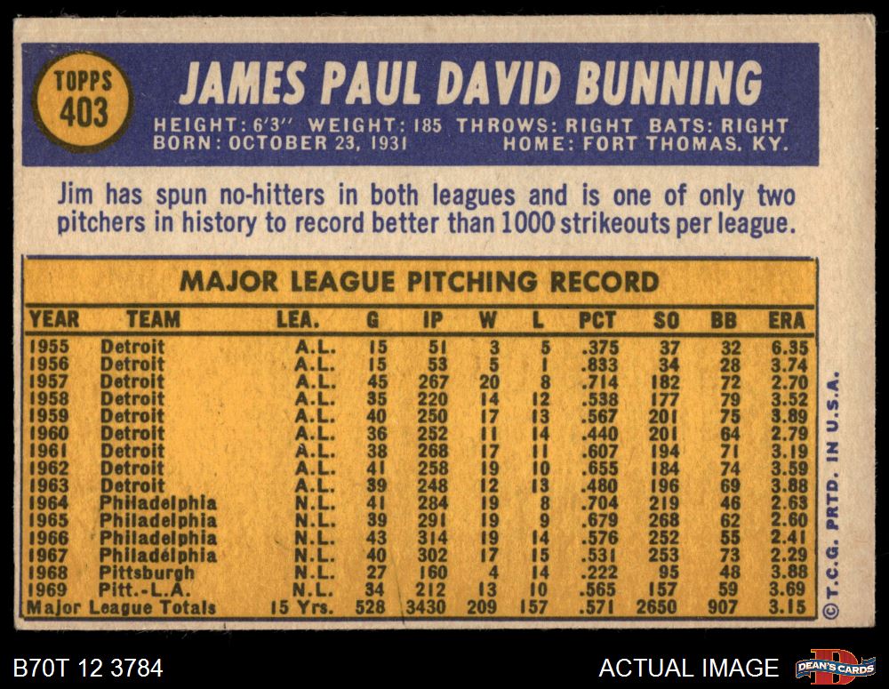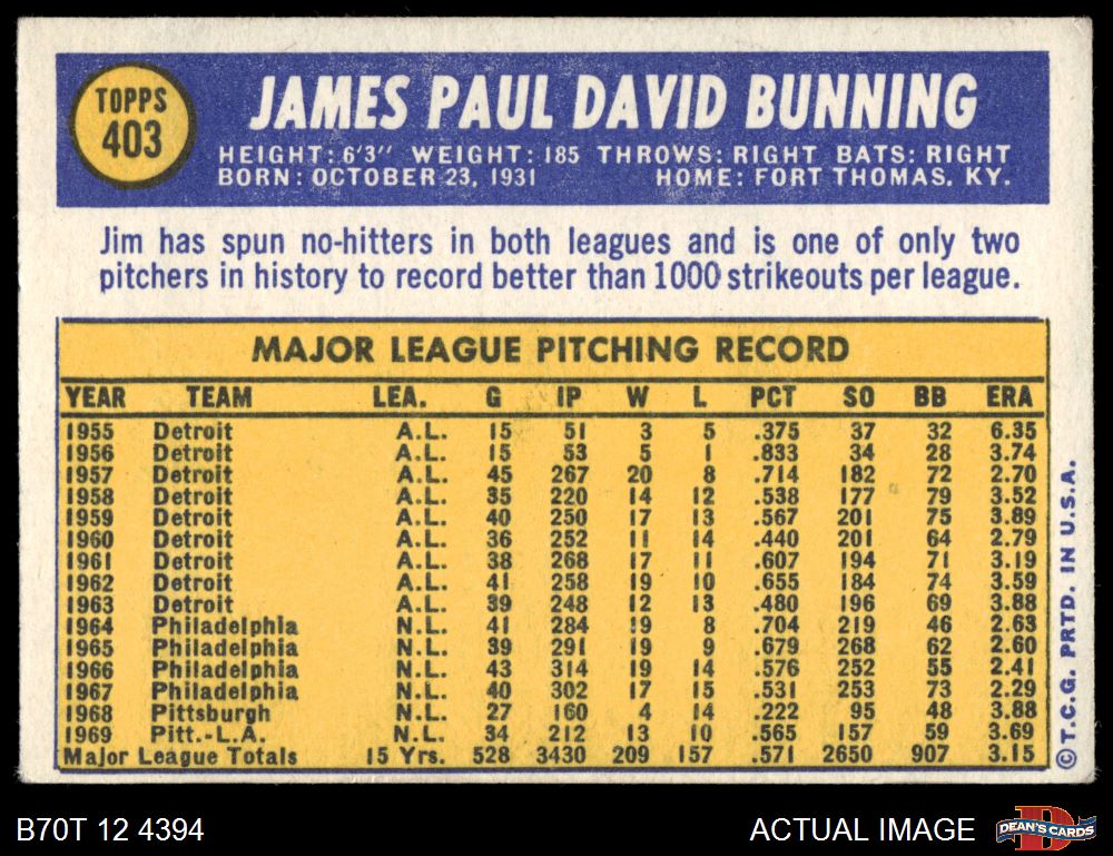 1970 Topps #403 Jim Bunning 4 - VG/EX