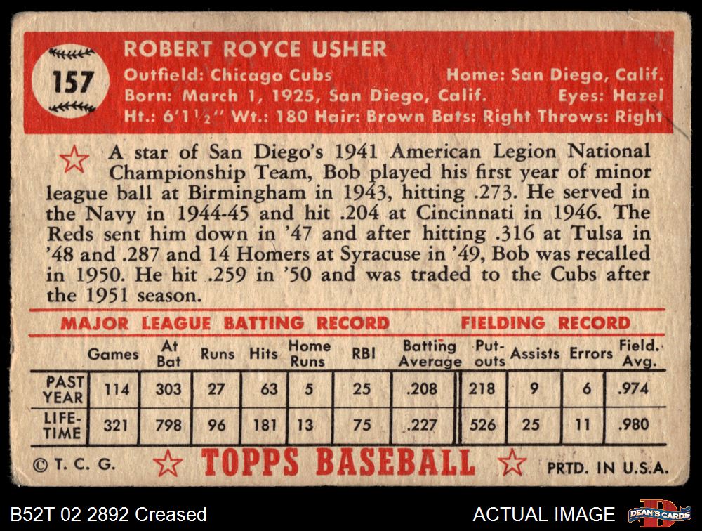 1952 Topps #157 CRM Bobby Usher 1.5 - FAIR