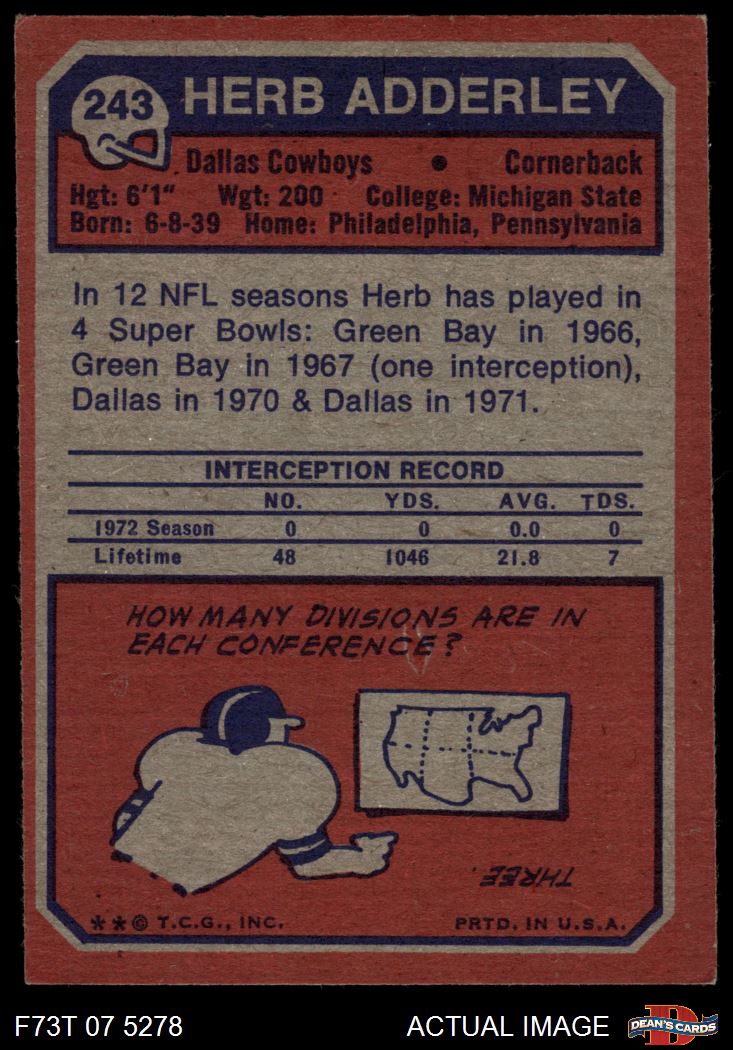 1973 Topps #243 Herb Adderley 5 - EX