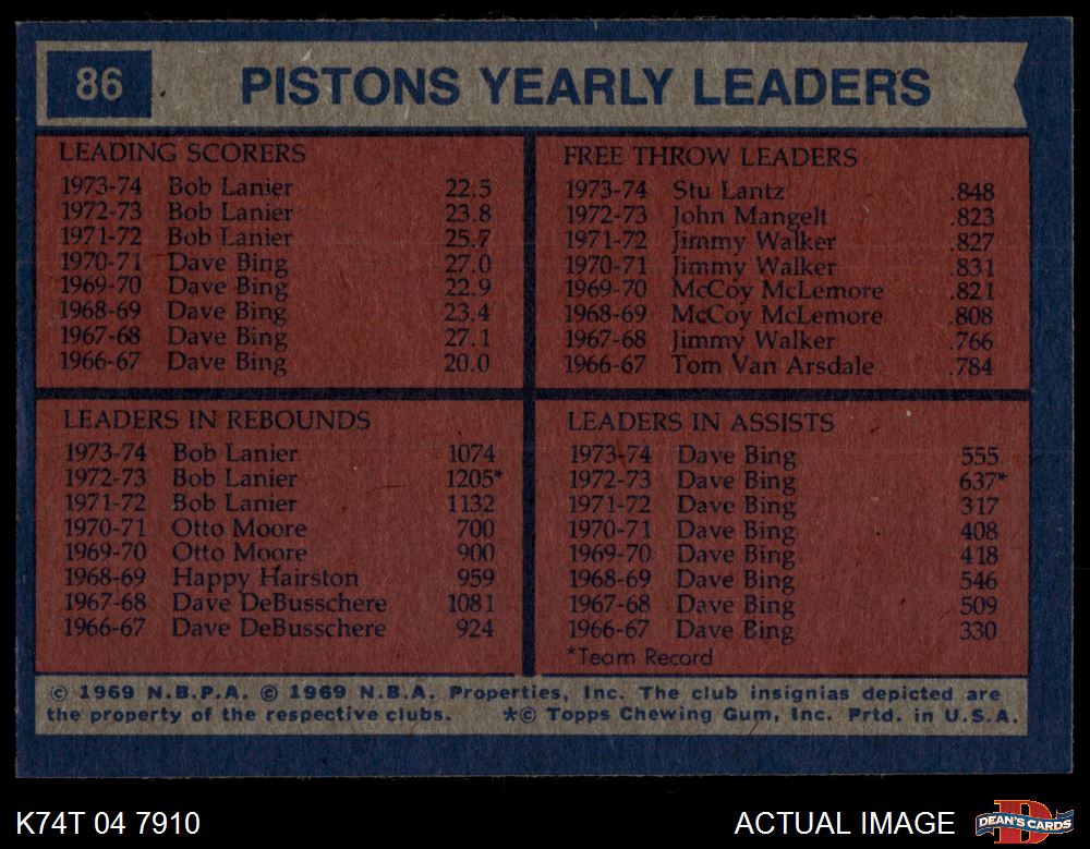 1974 Topps #86 - Stu Lantz / Bob Lanier / Dave Bing Pistons Leaders 3 - VG