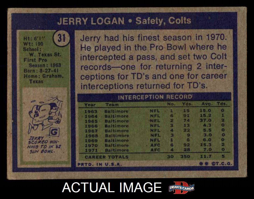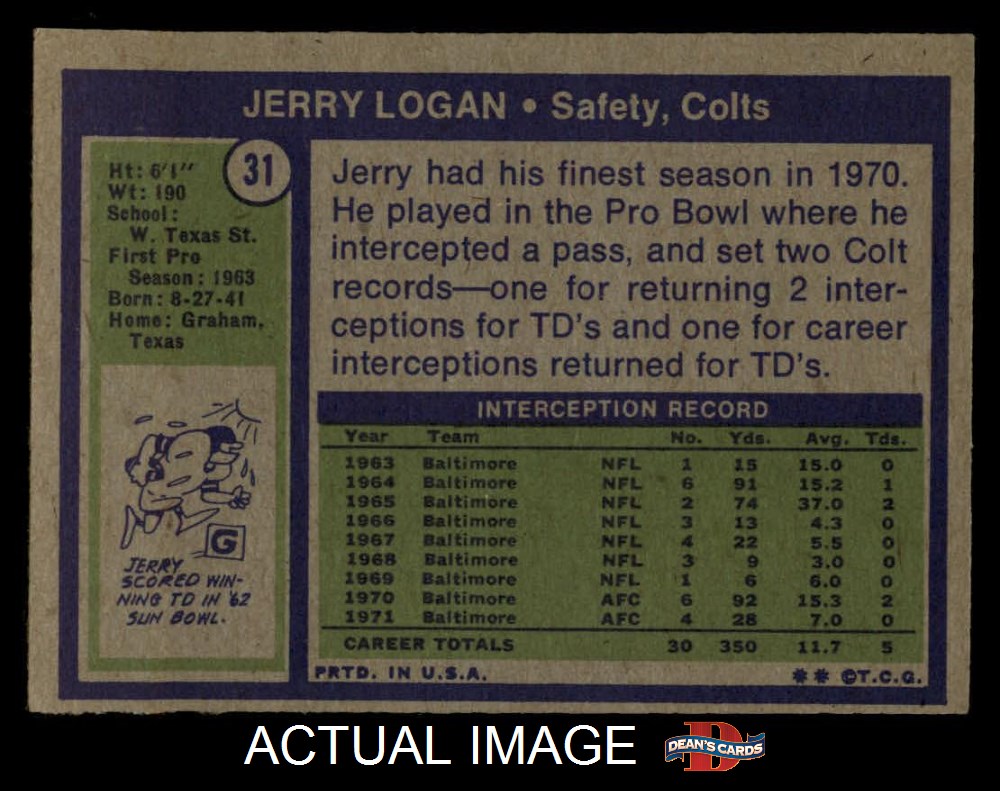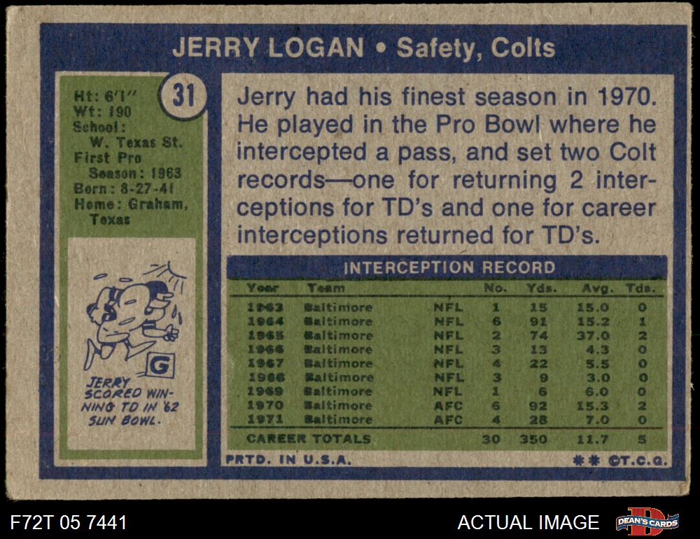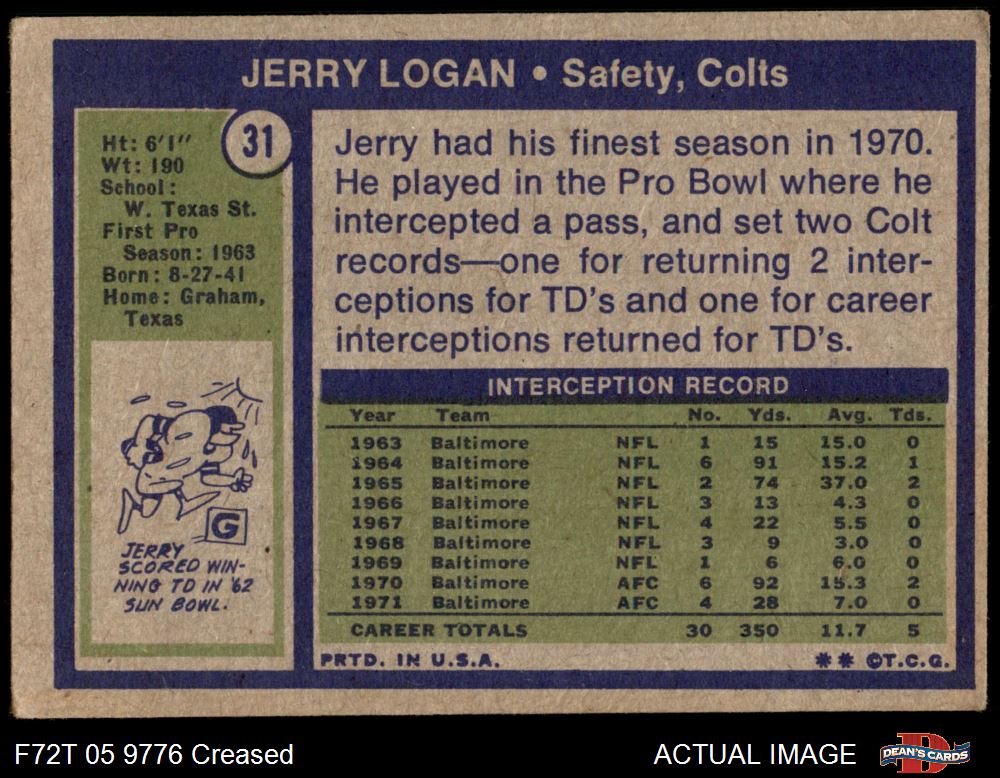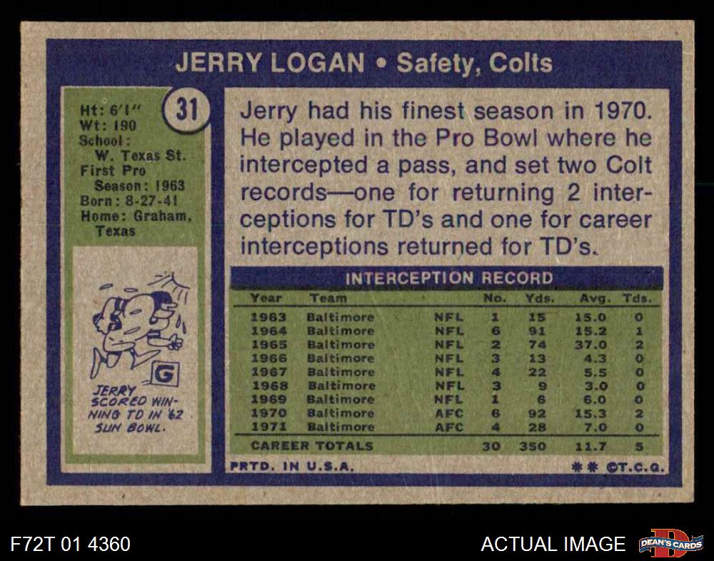 1972 Topps #31 Jerry Logan 2 - GOOD