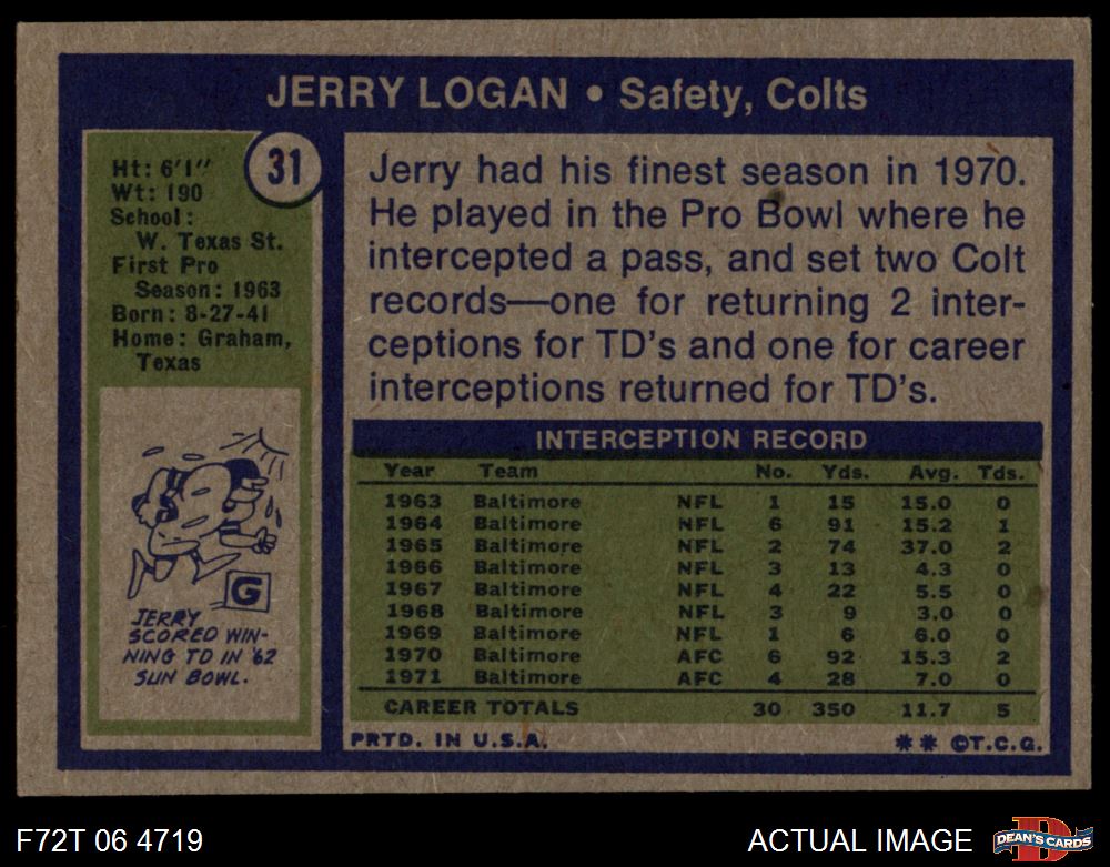 1972 Topps #31 Jerry Logan 6 - EX/MT