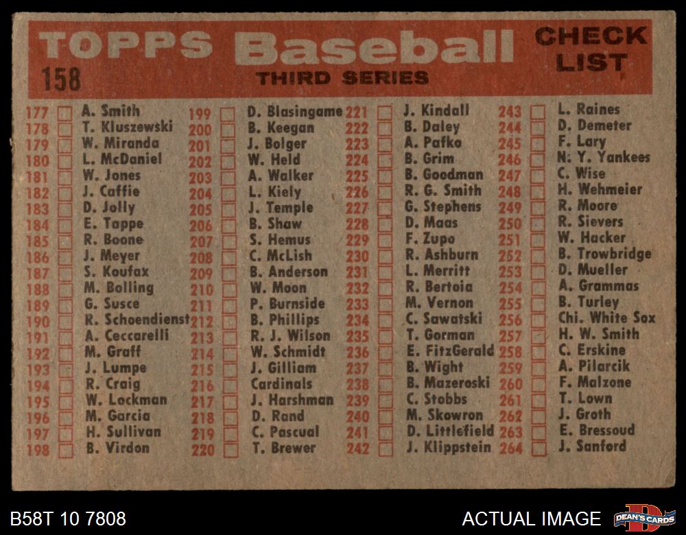 1958 Topps #158 Indians Team Checklist 2 - GOOD
