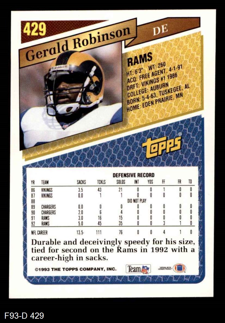 1993 Topps #429 Gerald Robinson 8 - NM/MT