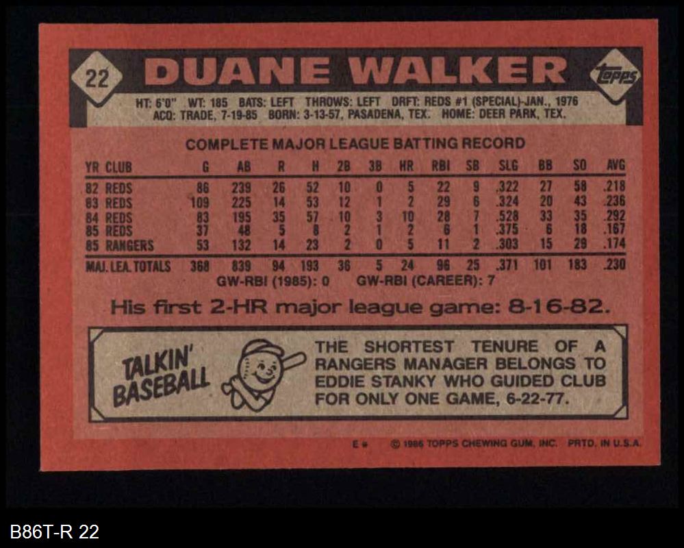 1986 Topps Baseball Cards (4,655 available)1986 Topps Rangers (365 available)