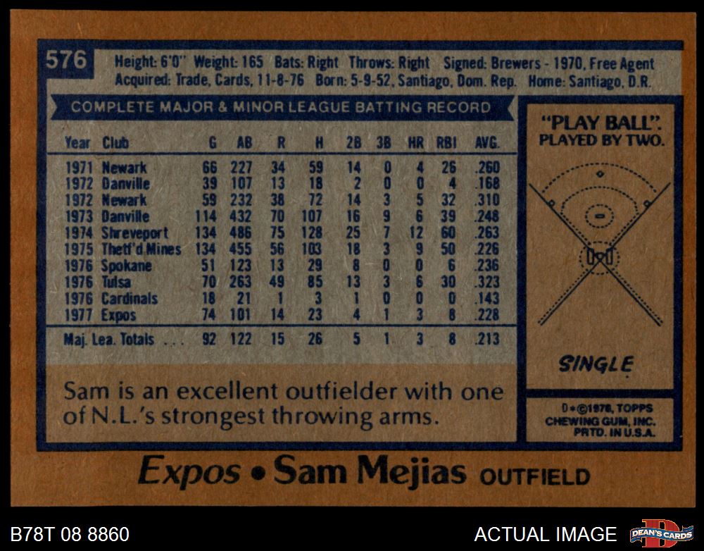 1978 Topps #576 Sam Mejias 6 - EX/MT