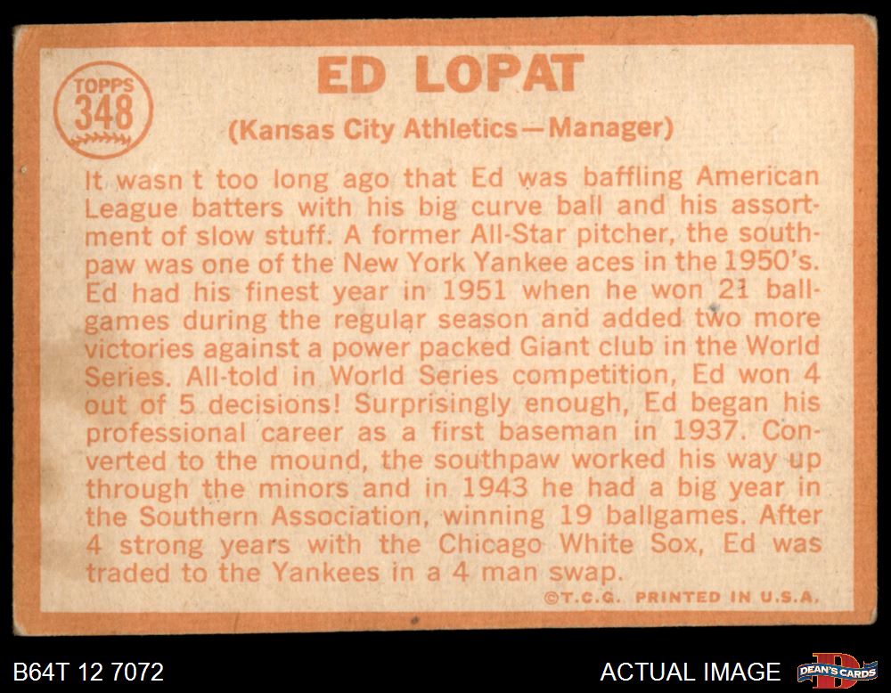 1964 Topps #348 Eddie Lopat 1.5 - FAIR