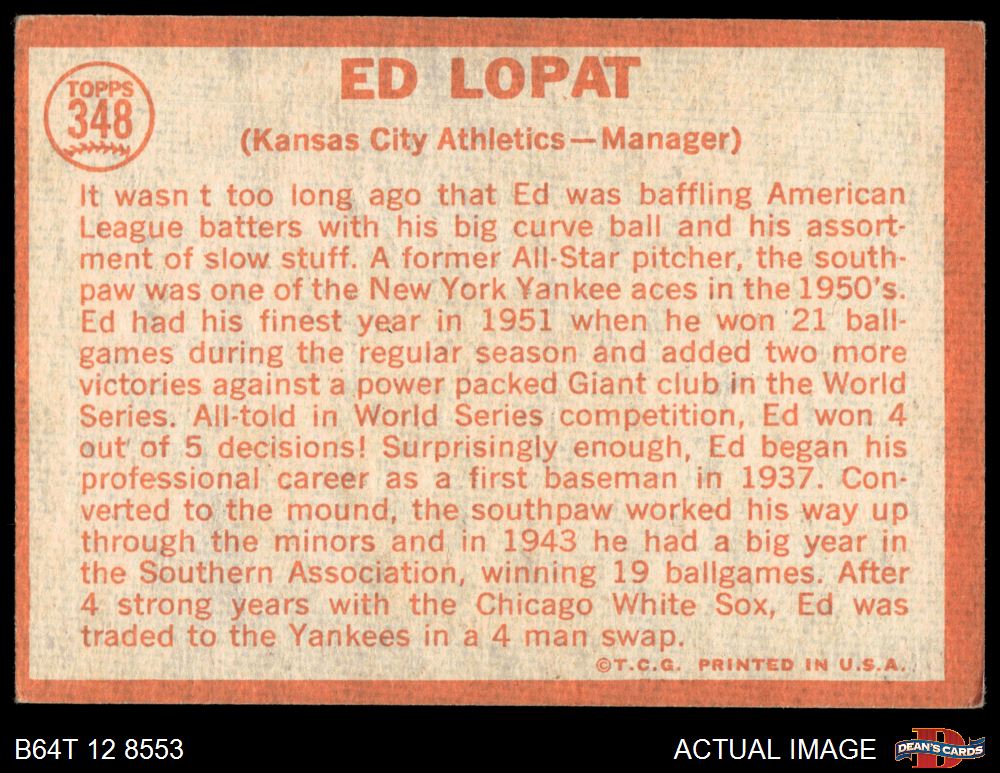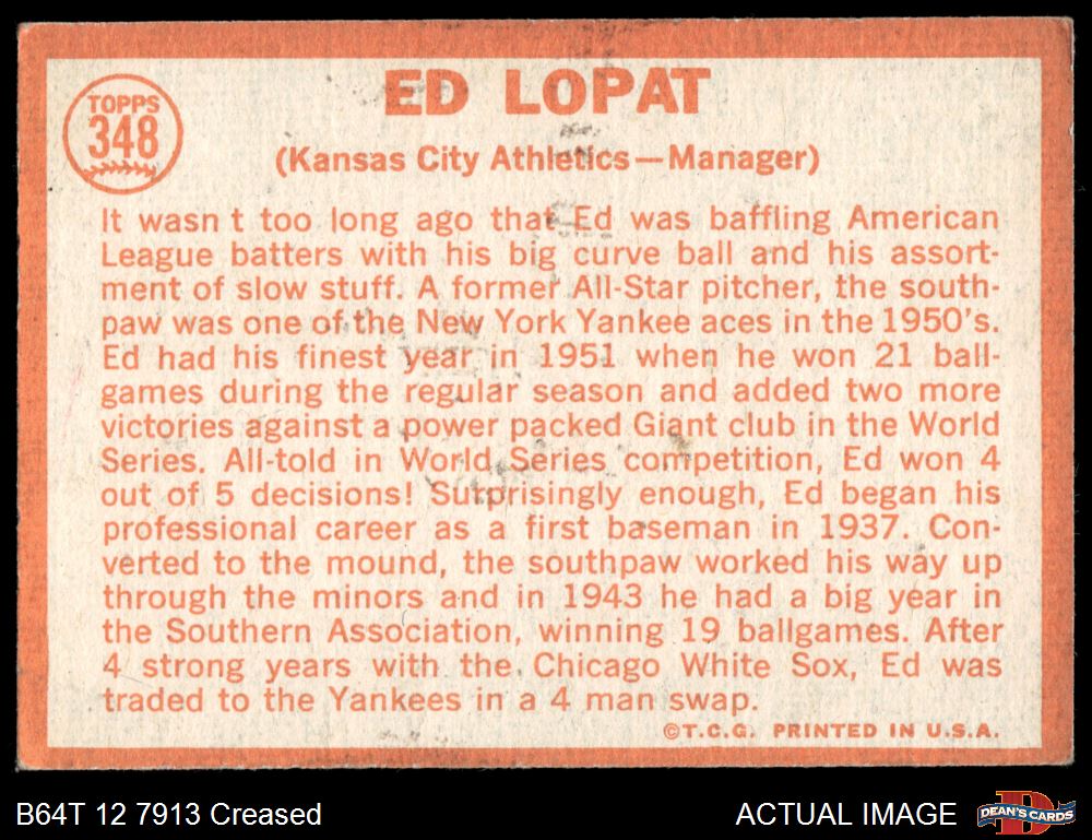 1964 Topps #348 Eddie Lopat