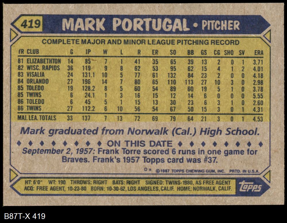 1987 Topps #419 Mark Portugal