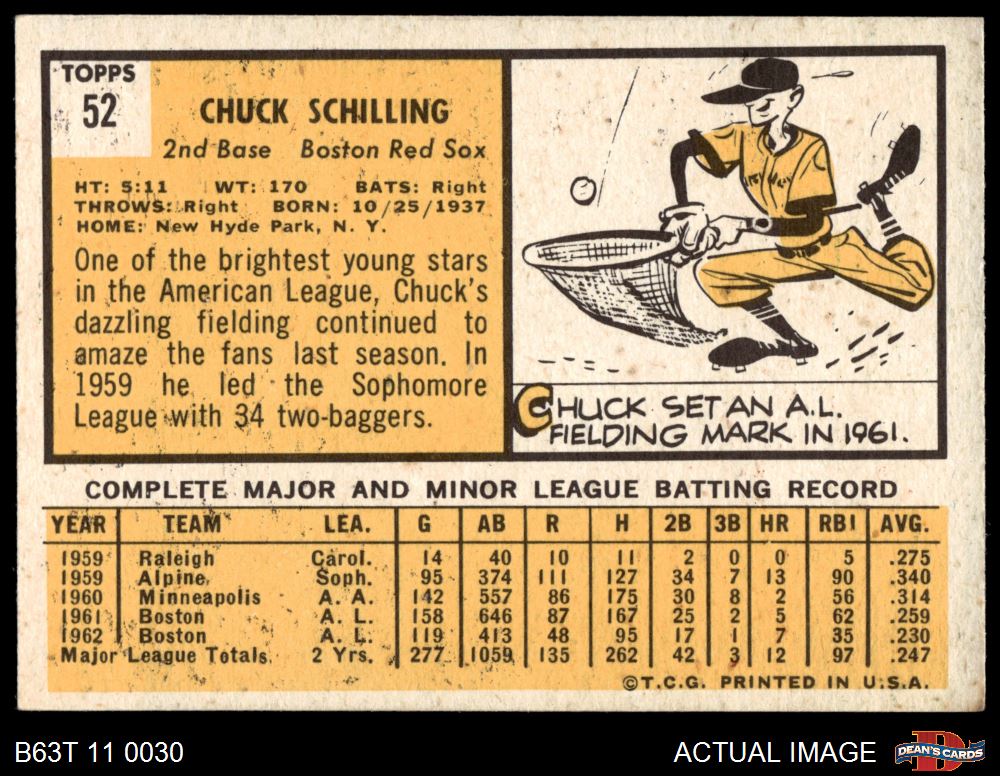 1963 Topps #52 Chuck Schilling