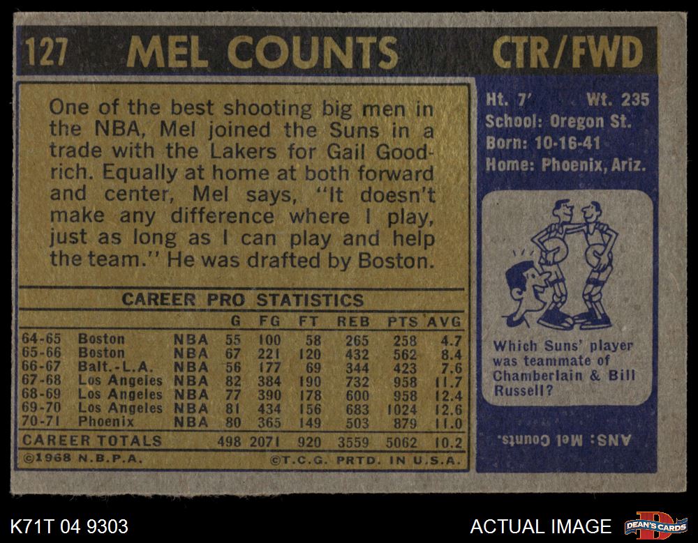 1971 Topps #127 Mel Counts 2 - GOOD