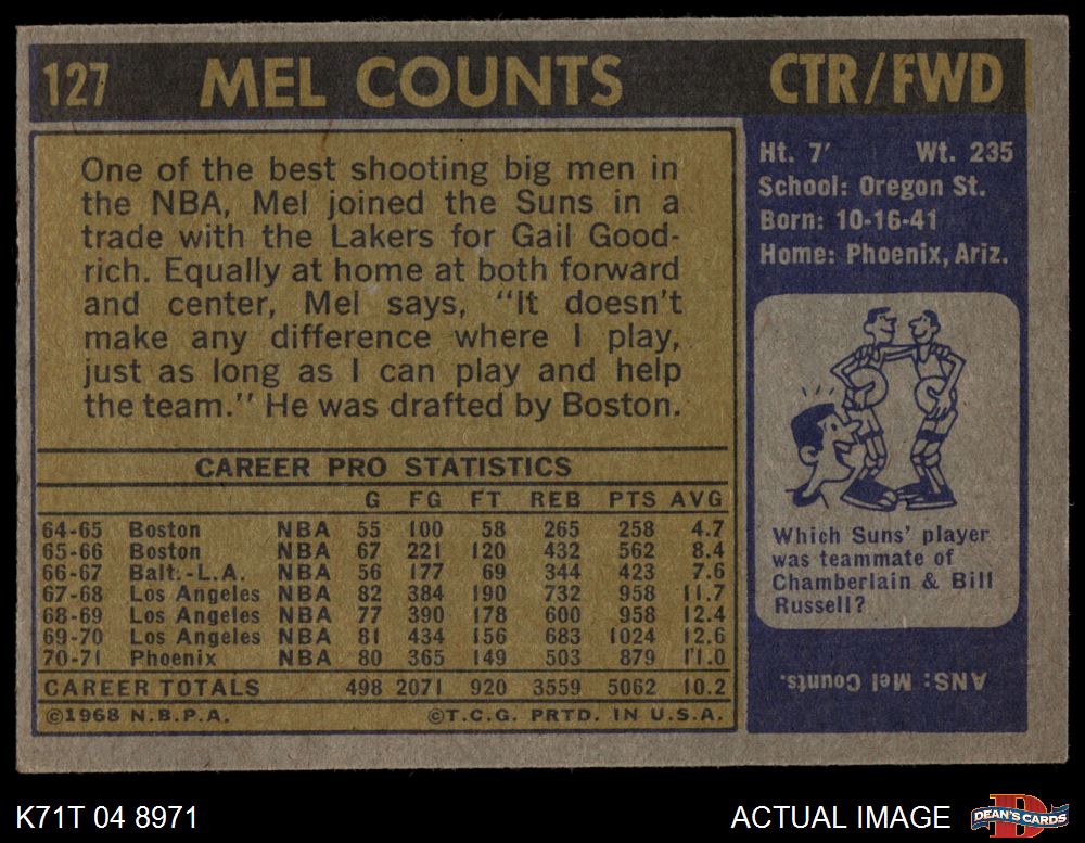 1971 Topps #127 Mel Counts 4 - VG/EX