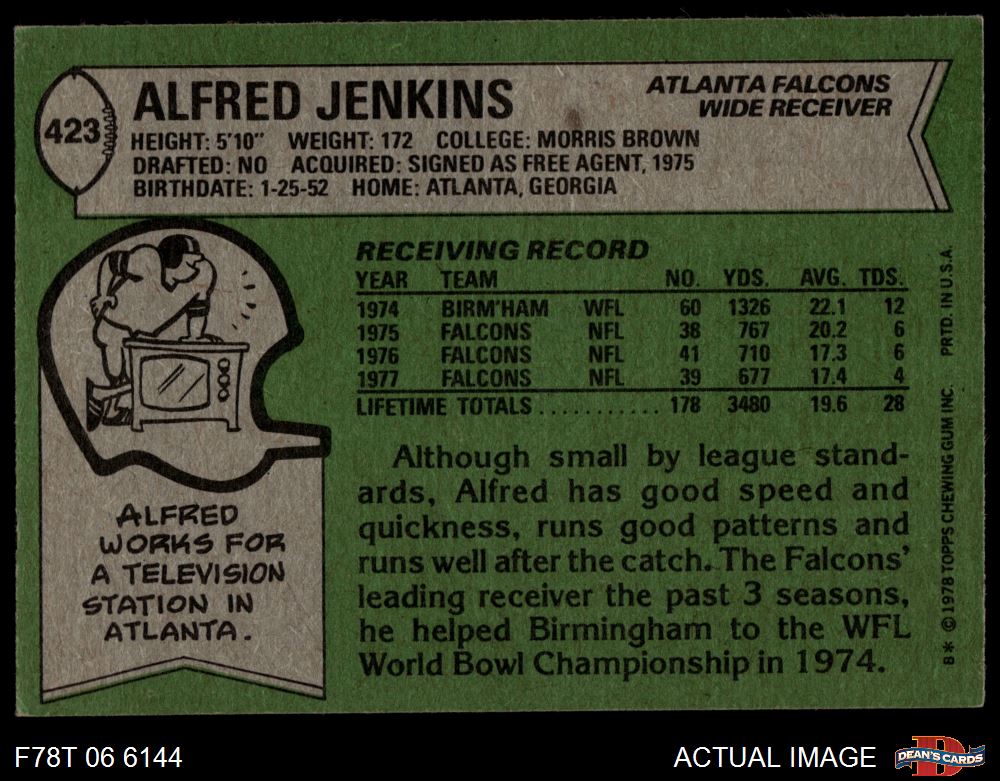 1978 Topps #423 Alfred Jenkins 4 - VG/EX