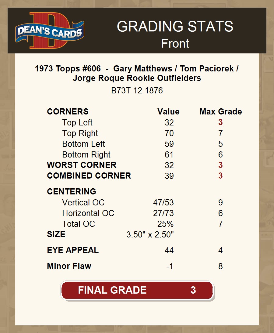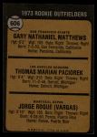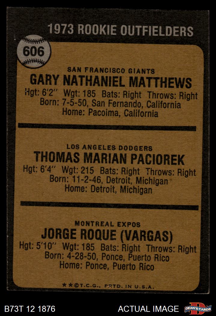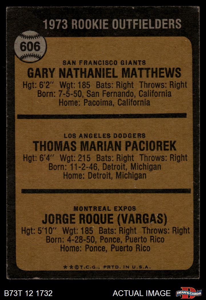 1973 Topps #606 - Gary Matthews / Tom Paciorek / Jorge Roque Rookie Outfielders 3 - VG