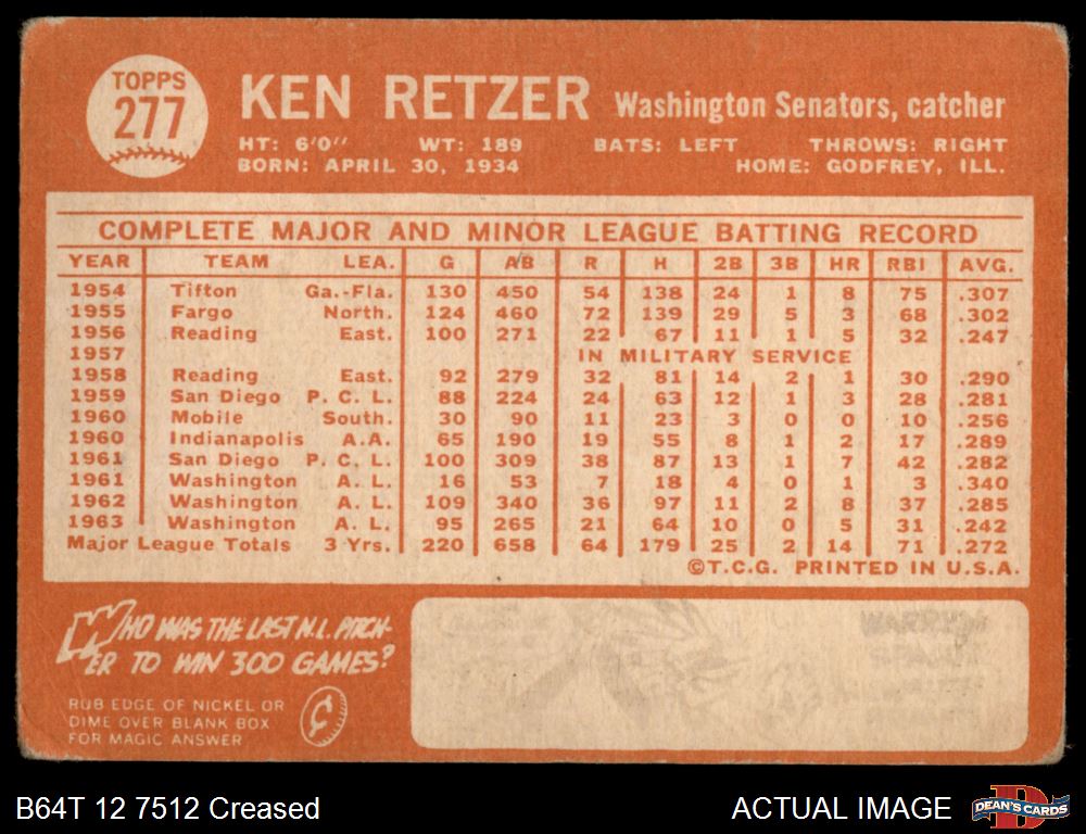 1964 Topps #277 Ken Retzer Front Thumbnail