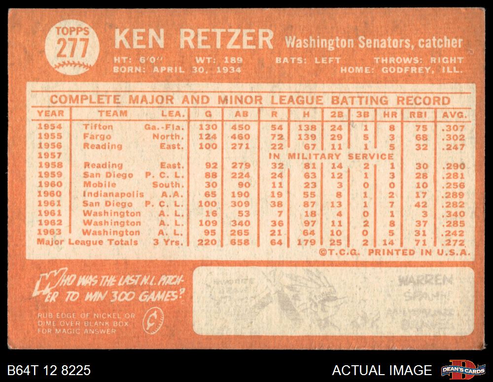 1964 Topps #277 Ken Retzer 2 - GOOD