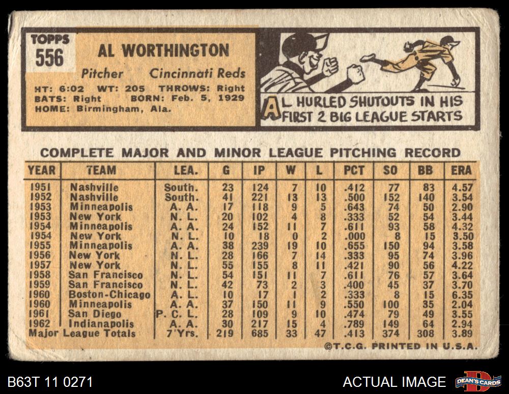 1963 Topps #556 Al Worthington 1 - POOR
