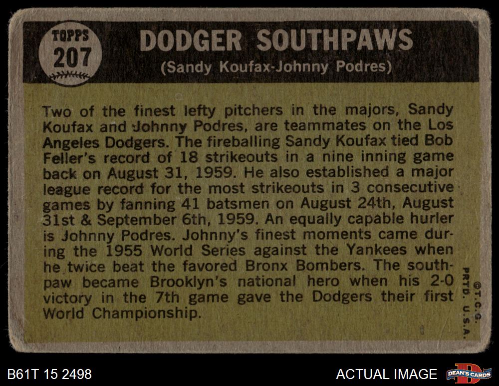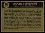 1961 Topps #207 - Sandy Koufax / Johnny Podres Dodger Southpaws 1 - POOR