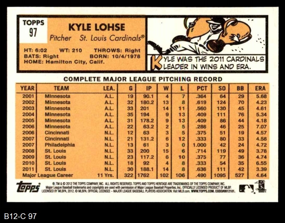 2012 Topps Heritage Baseball Cards (1,545 available)2012 Topps Heritage Cardinals (55 available)