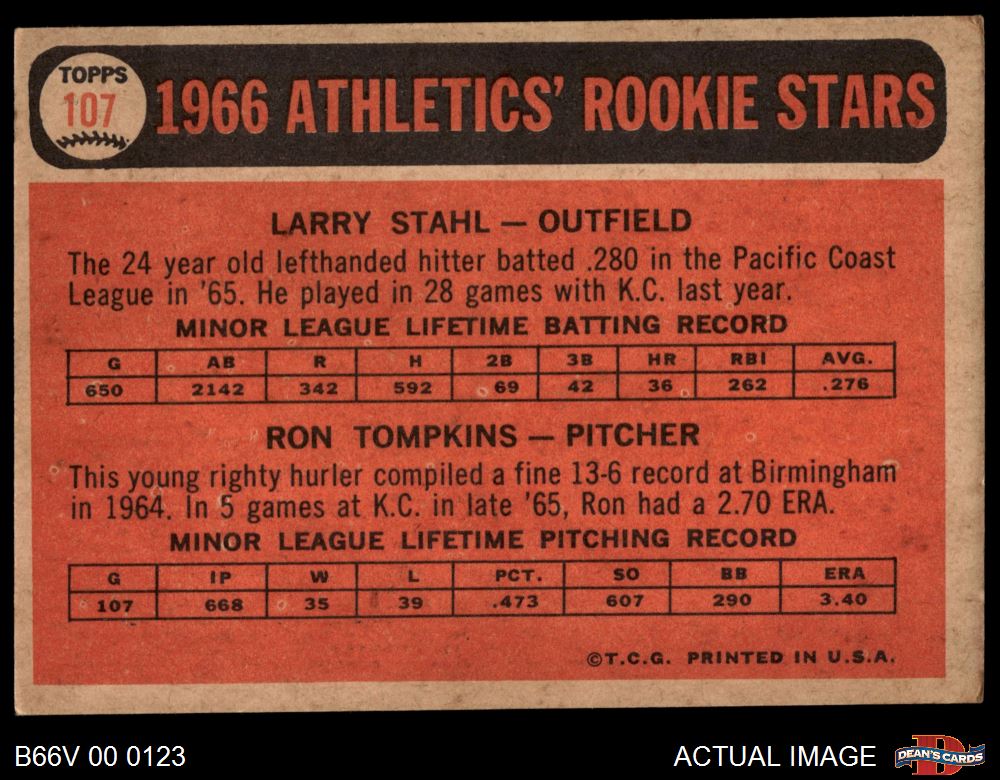 1966 Topps Venezuelan #107 - Larry Stahl / Ron Tompkins A's Rookies 6 - EX/MT