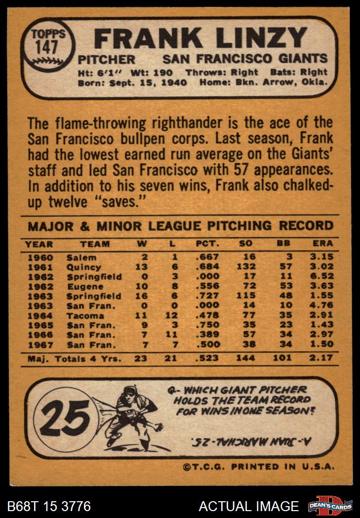 1968 Topps #147 Frank Linzy