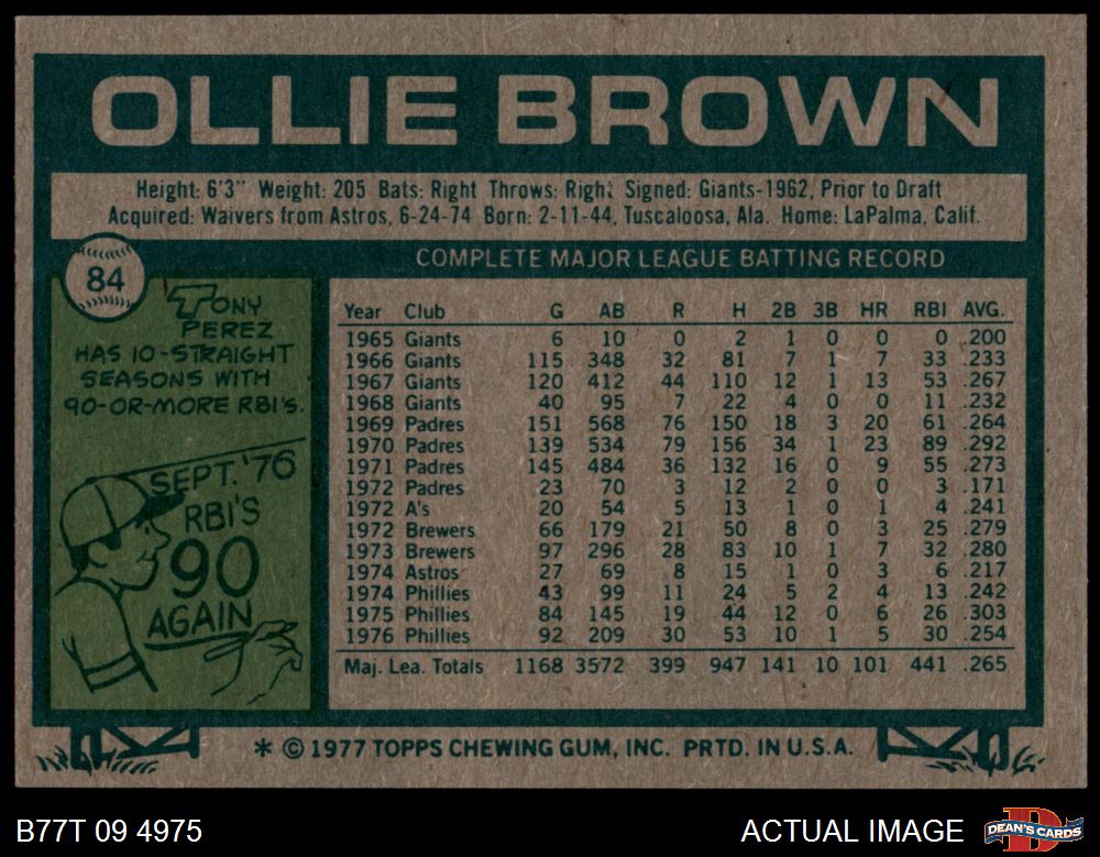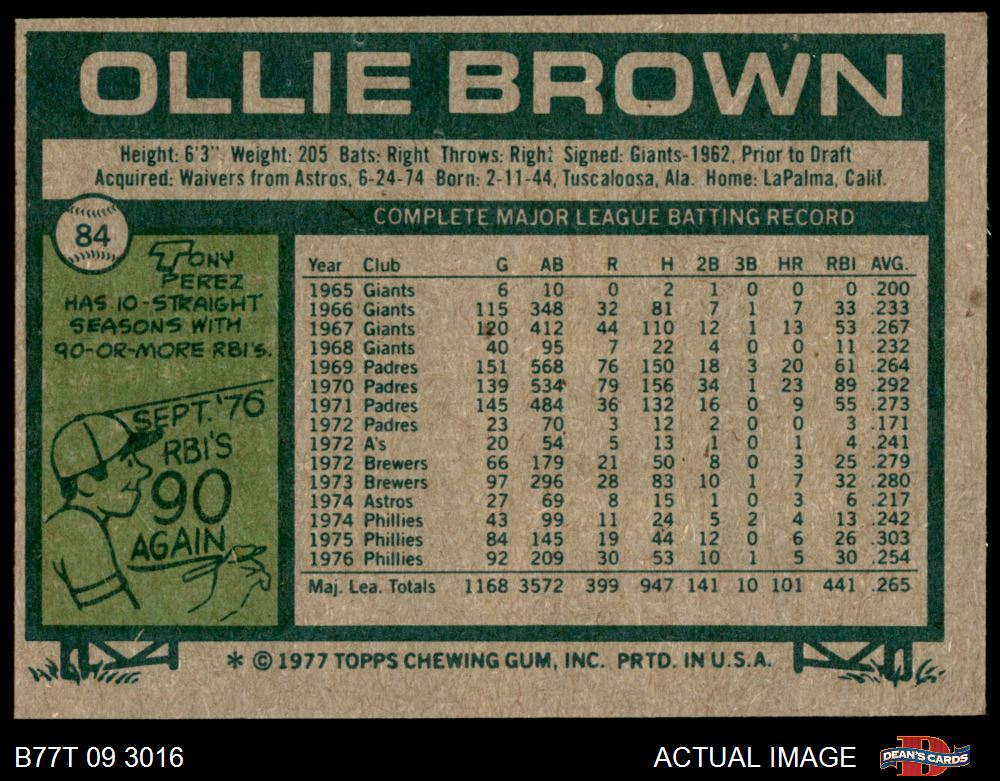 1977 Topps #84 Ollie Brown 6 - EX/MT