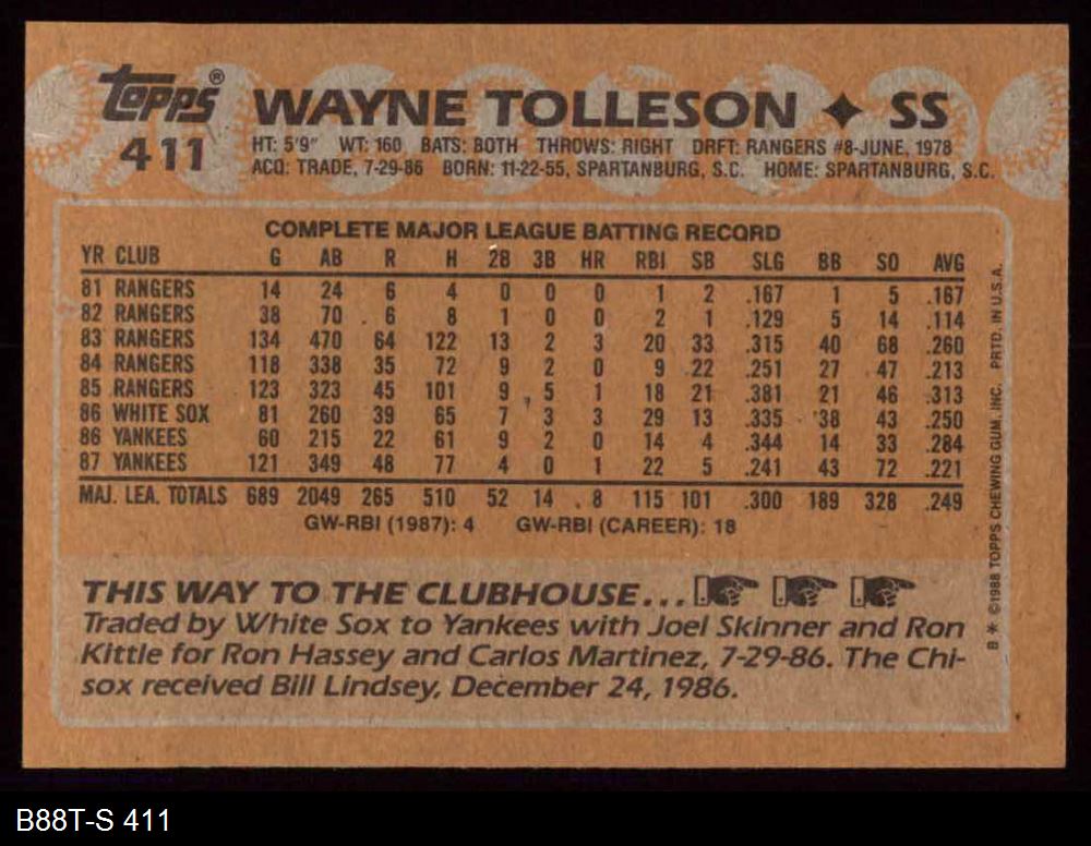 1988 Topps #411 Wayne Tolleson