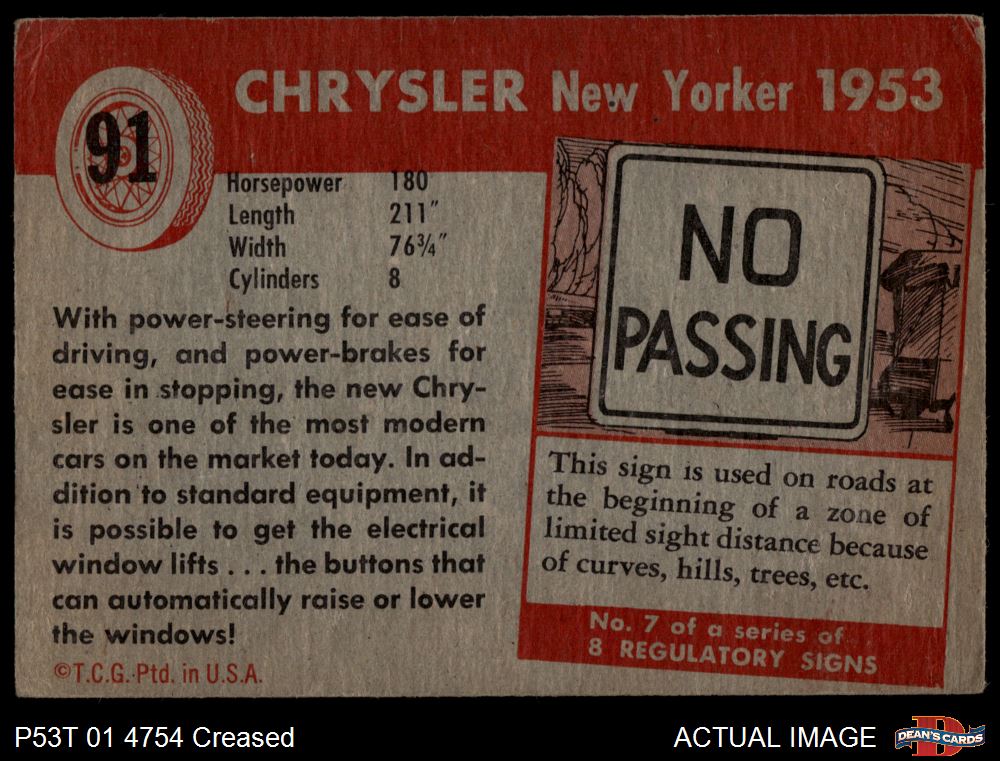 1954 Topps World on Wheels #91 Chrysler New Yorker 1953 3 - VG