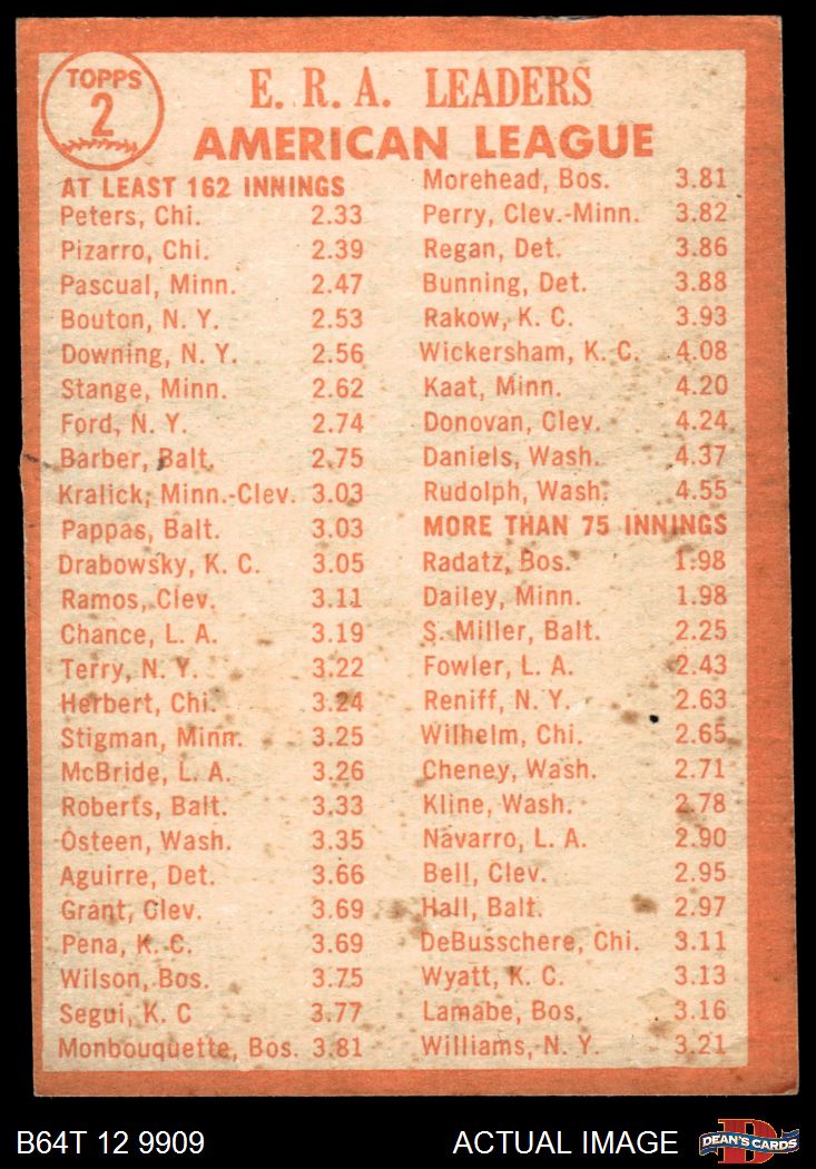 1964 Topps #2 - Gary Peters / Juan Pizarro / Camilo Pascual AL ERA Leaders 2 - GOOD