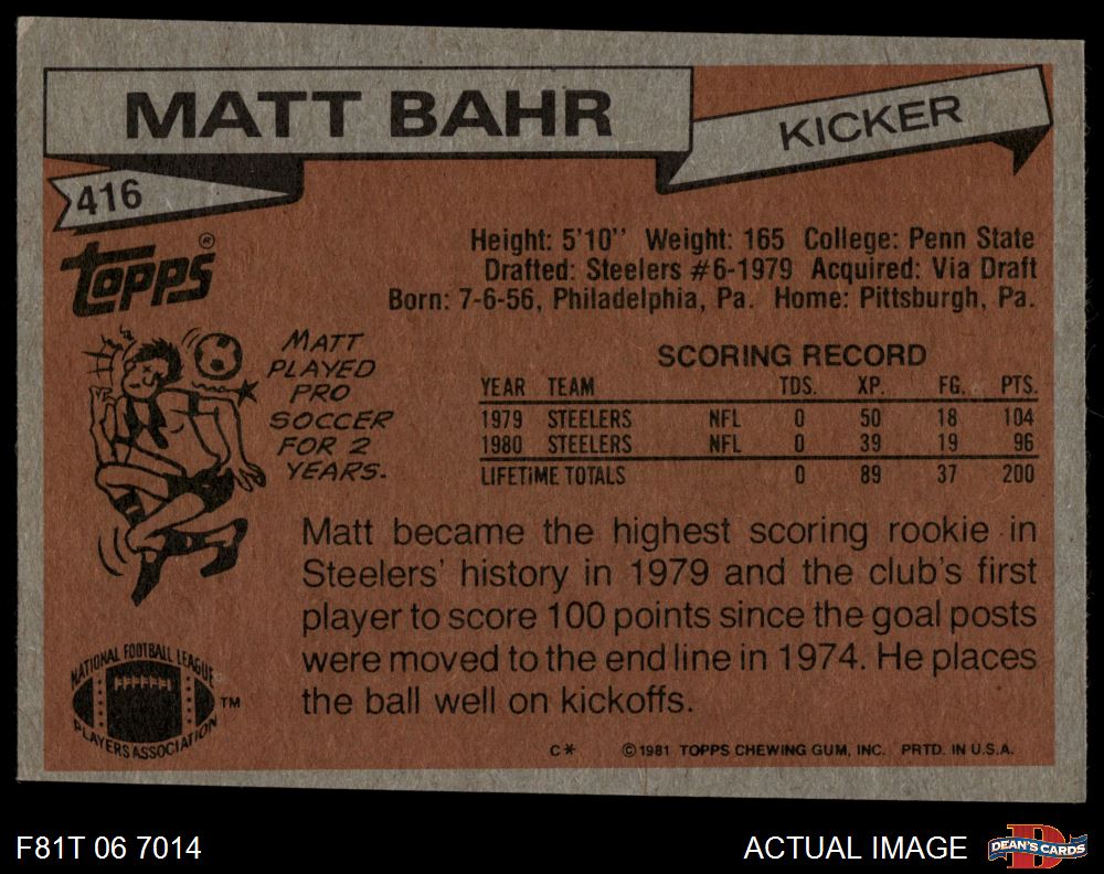 1981 Topps #416 Matt Bahr 4 - VG/EX