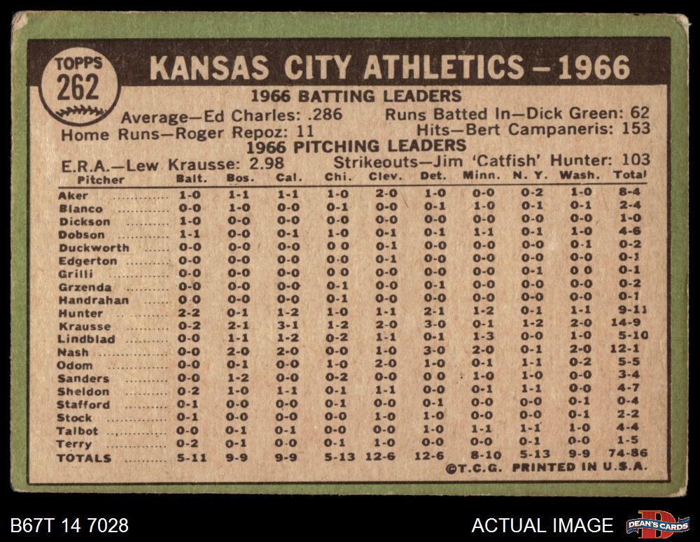 1967 Topps #262 Athletics Team 1 - POOR