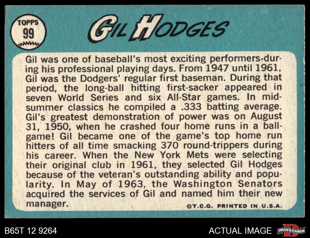 1965 Topps #99 Gil Hodges