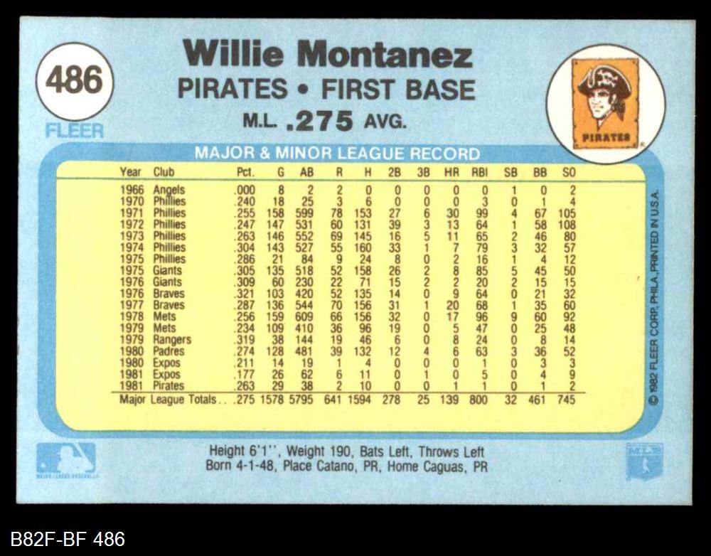 1982 Fleer #486 Willie Montanez