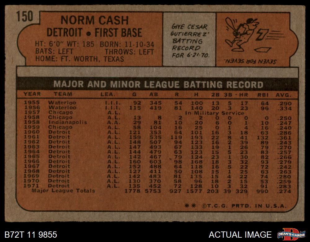 1972 Topps #150 Norm Cash 1.5 - FAIR