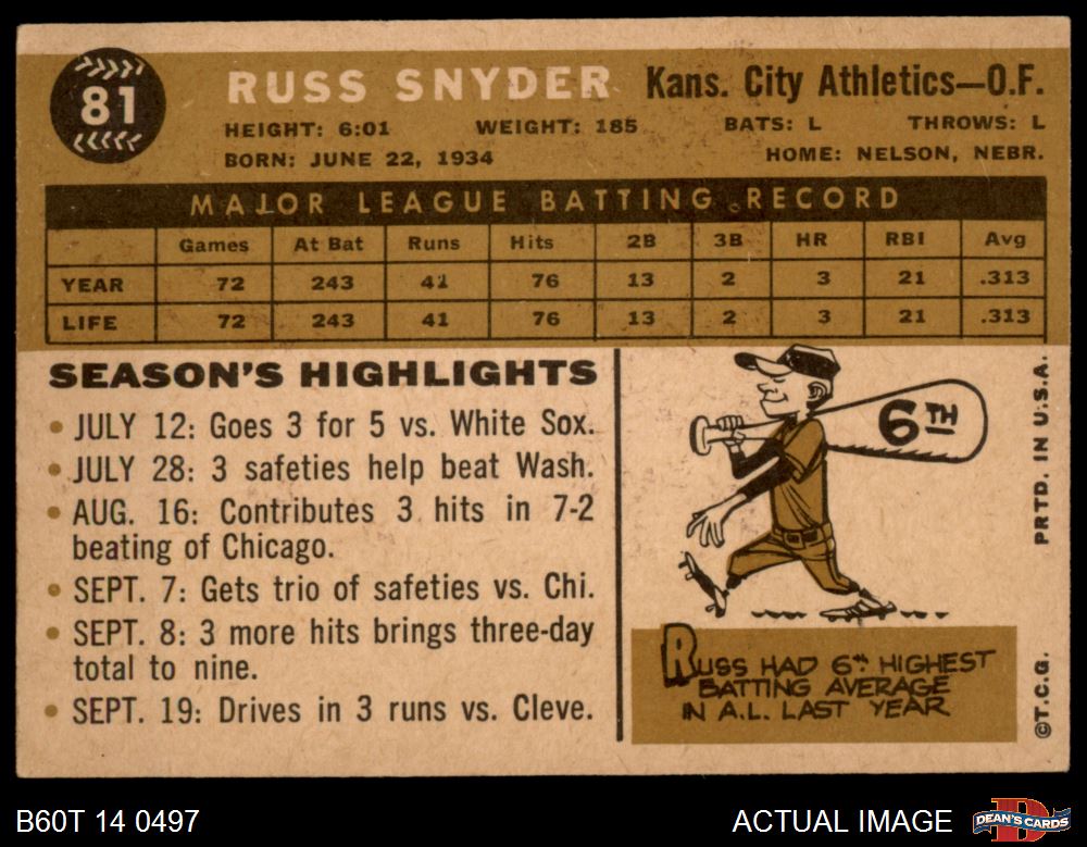 1960 Topps Baseball Cards (11,452 available)1960 Topps Athletics (768 available)