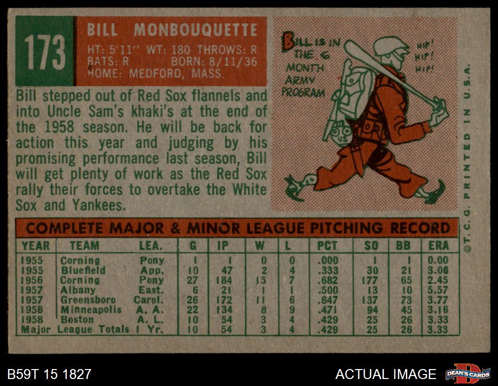 1959 Topps #173 Bill Monbouquette 3 - VG