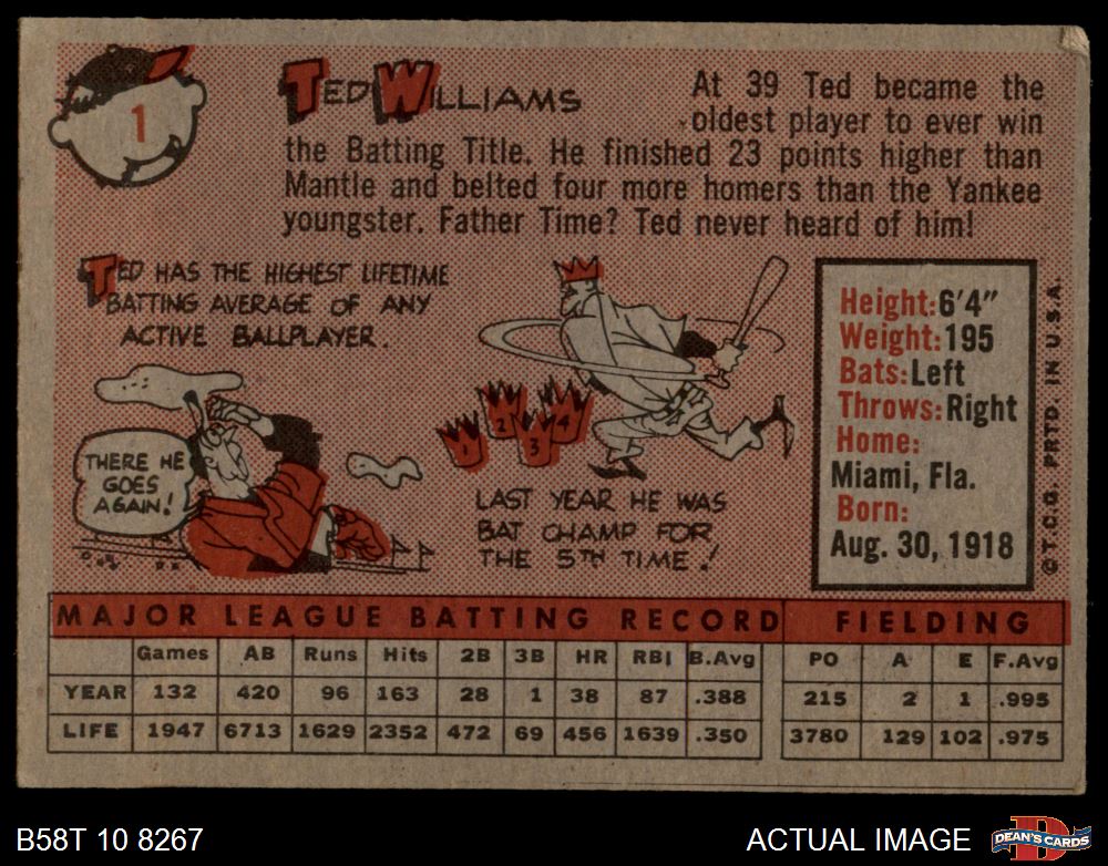 1958 Topps #1 Ted Williams 3 - VG