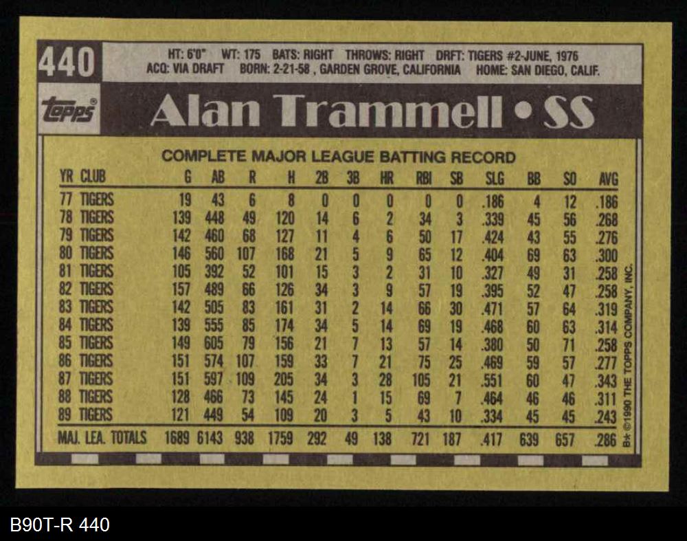 1990 Topps #440 Alan Trammell