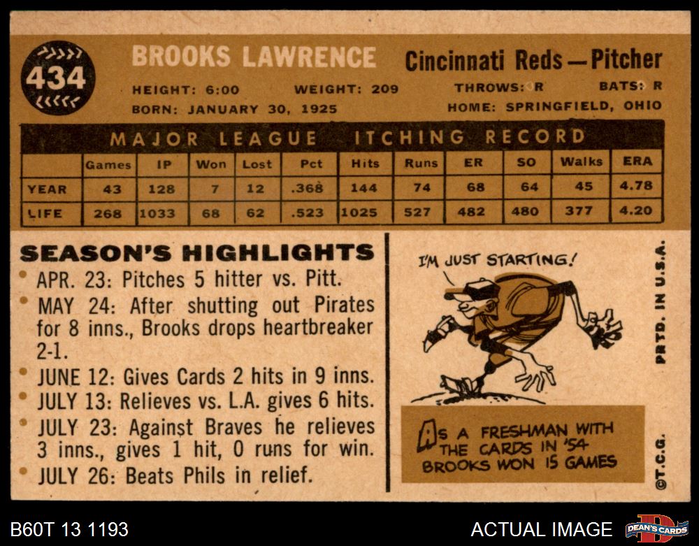 1960 Topps #434 Brooks Lawrence 6 - EX/MT