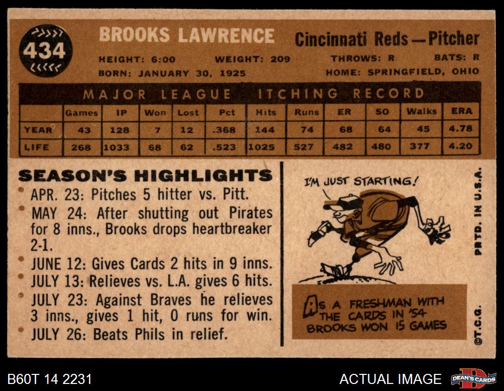 1960 Topps #434 Brooks Lawrence 7 - NM