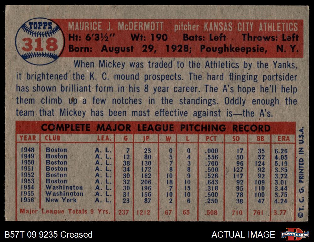 1957 Topps #318 Mickey McDermott 2 - GOOD