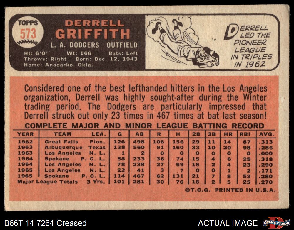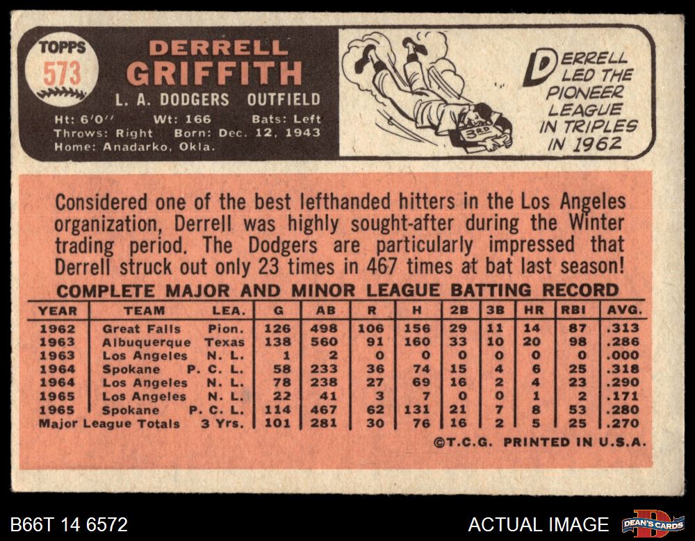 1966 Topps #573 Derrell Griffith