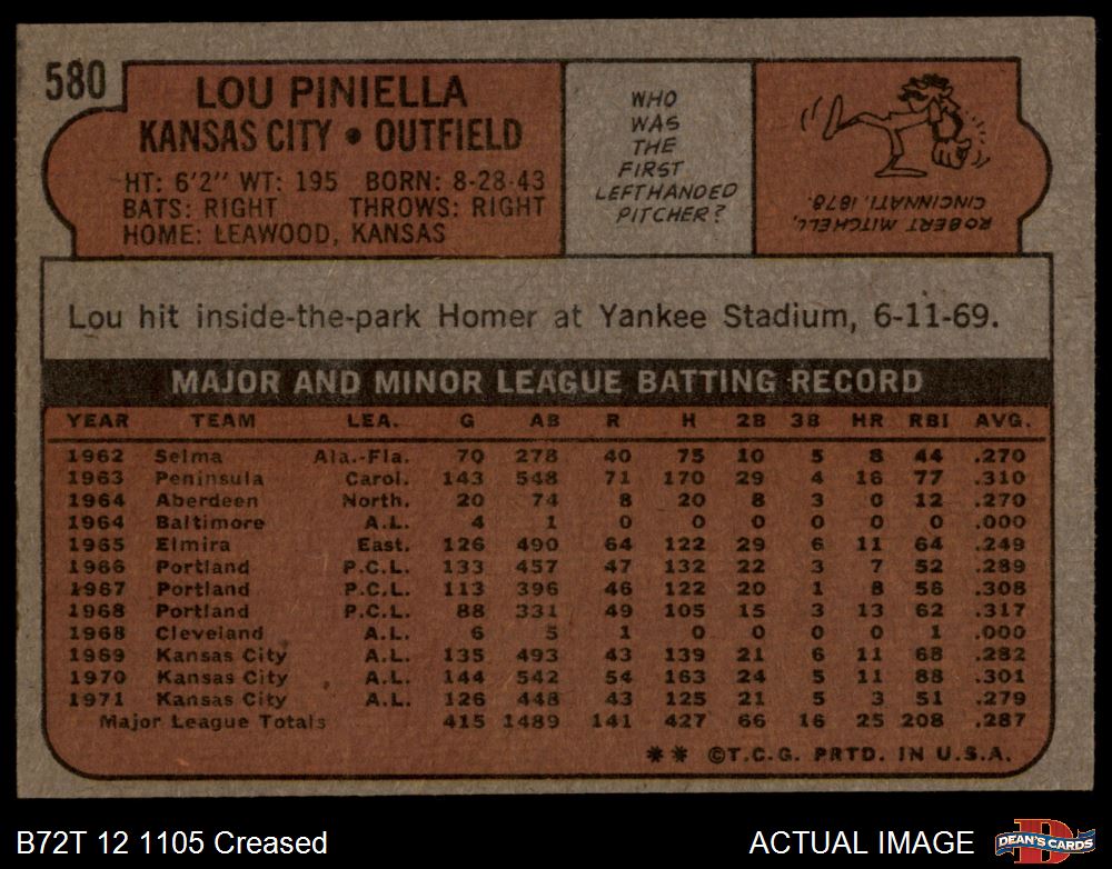 1972 Topps #580 Lou Piniella 2 - GOOD