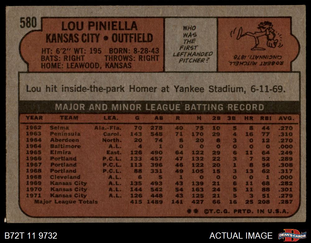 1972 Topps #580 Lou Piniella 2.5 - GD+