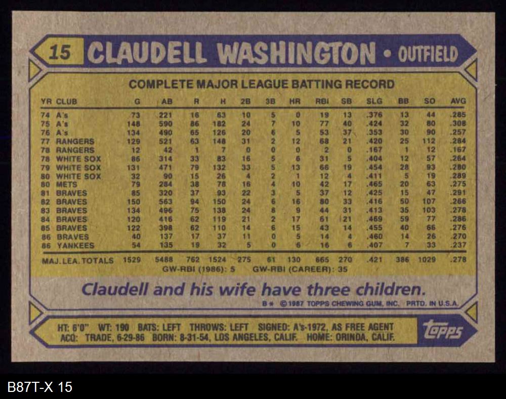 1987 Topps #15 Claudell Washington
