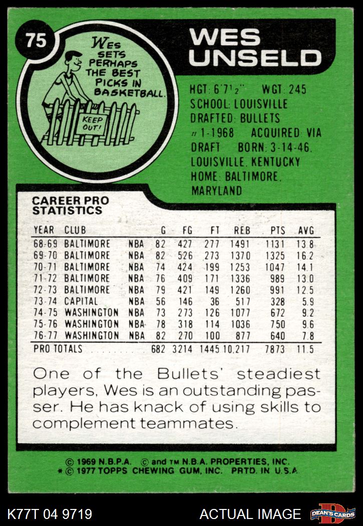 1977 Topps #75 Wes Unseld 5 - EX