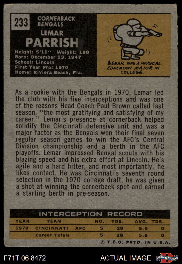 1971 Topps #233 Lemar Parrish 1 - POOR