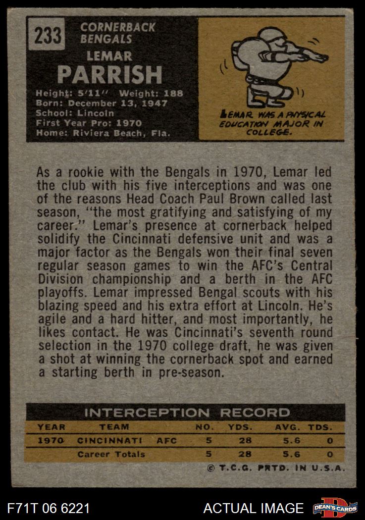1971 Topps #233 Lemar Parrish 6 - EX/MT